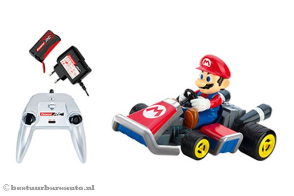 Carrera RC op afstand bestuurbare auto Mario van Mario Kart 7. Zodra de auto rijdt, beweegt Mario van links naar rechts. Mario is ready to run en wordt geleverd inclusief batterijen, een accu en snellader. Met de meegeleverde 7.4 V – 700 mAH Li-Ion accu kun je gemakkelijk 40 minuten rijden.